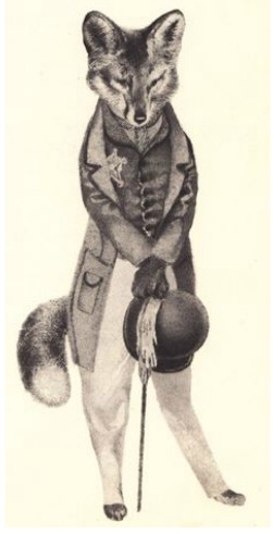 The dapper fox, elegantly appointed, reminds us that fine threads boost our confidence and self esteem. . . . and when you exude confidence you radiate, you are most definitely "naturally foxy"